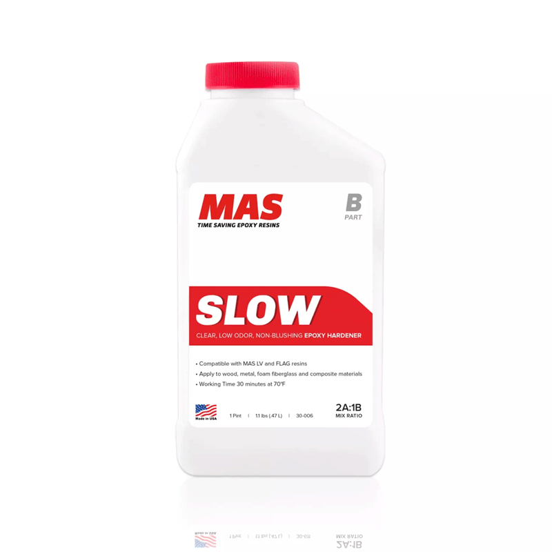 Slow Hardener is a 2:1 non-blushing hardener. It can be paired with our LV Resin or FLAG Resin and mixed with the 2:1 Medium Hardener and/or Fast Hardener, making it one of the most versatile epoxy hardeners on the market. You get more time than with other supplier’s “Slow Hardeners” so it’s easier to work with in high temperatures and for beginners. Slow Hardener gives you strength, beauty and a four-hour working time.